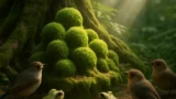 4. 夜の森、湿った切り株の上で静かに育つ私にも、タヌキたちのリズムは伝わってくる。腹太鼓の振動と葉っぱの舞い――胞子たちがリズムに合わせてはじける夜は、不思議な高揚感に包まれるよ。タヌキたちは変身しても、森への愛は変わらない。だからこそ、私も夜光葉の下でこっそり応援しているんだ。