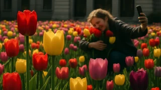 花壇に“プライバシー侵害者”現る!? チューリップ労働組合、葉陰から人間社会へもの申す