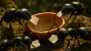 請求書って、丸めて運ぶもの?——森の経済最前線で働くわれらクロオオアリ(フタフシコオオアリ)にとって、その答えは意外にも「Yes」。いまや巣の入り口から切り株の上、あるいは倒木の下にまで、立派なフリーランス市場が広がりつつあります。アリ目線から見たこの大転換、地表スレスレ経済圏のいきものたちへ速報です!