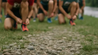朝の河川敷はざわめきに満ちていました。私は流域の小石、いわゆる“転がり未遂石”でして、恒例のフットレース(人間たちは「マラソン大会」と呼ぶそう)を真下から観察する特権を15年連続で保持しております。今年も、われら石一同、己の動かなさ加減と“観察力”では絶対に負けないぞと胸を張ってサポート体制を整えました。